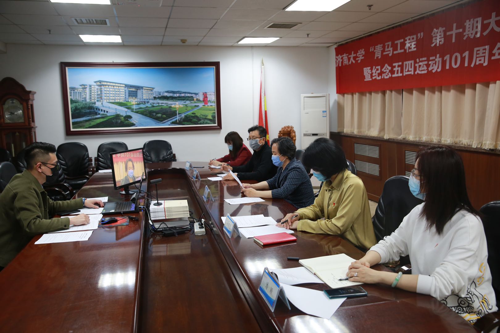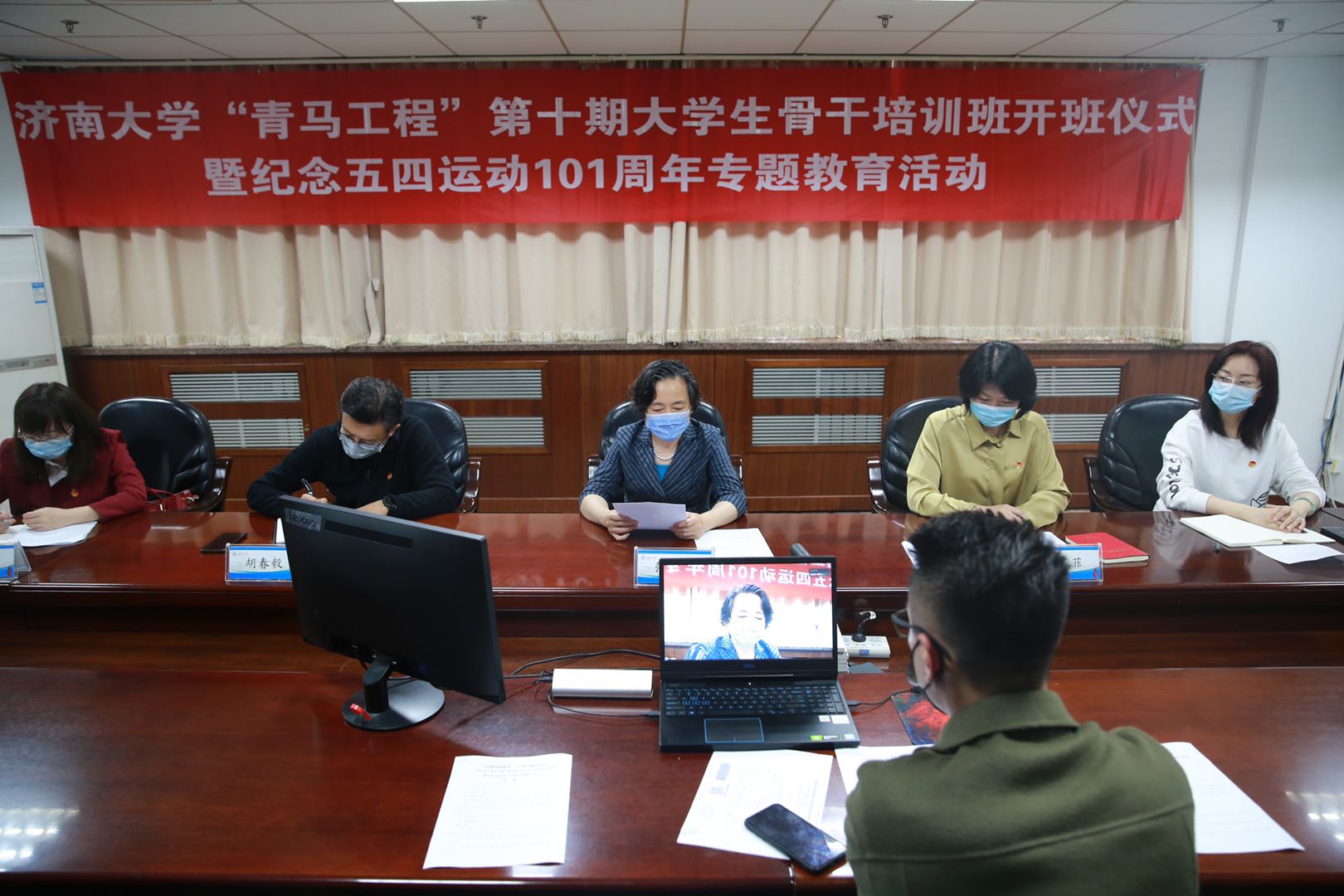5月8日下午,yl23455永利“青马工程”第十期大学生骨干培训班开班仪式暨纪念五四运动101周年专题教育活动在腾讯会议举行。学校党委副书记张硕秋,全体专职团干部,yl23455永利习近平新时代中国特色社会主义思想青年研习社成员、“青马工程”第九期大学生骨干培训班学员代表、“青马工程”第十期大学生骨干培训班全体学员参加了活动。仪式由校团委书记孙菲菲主持。