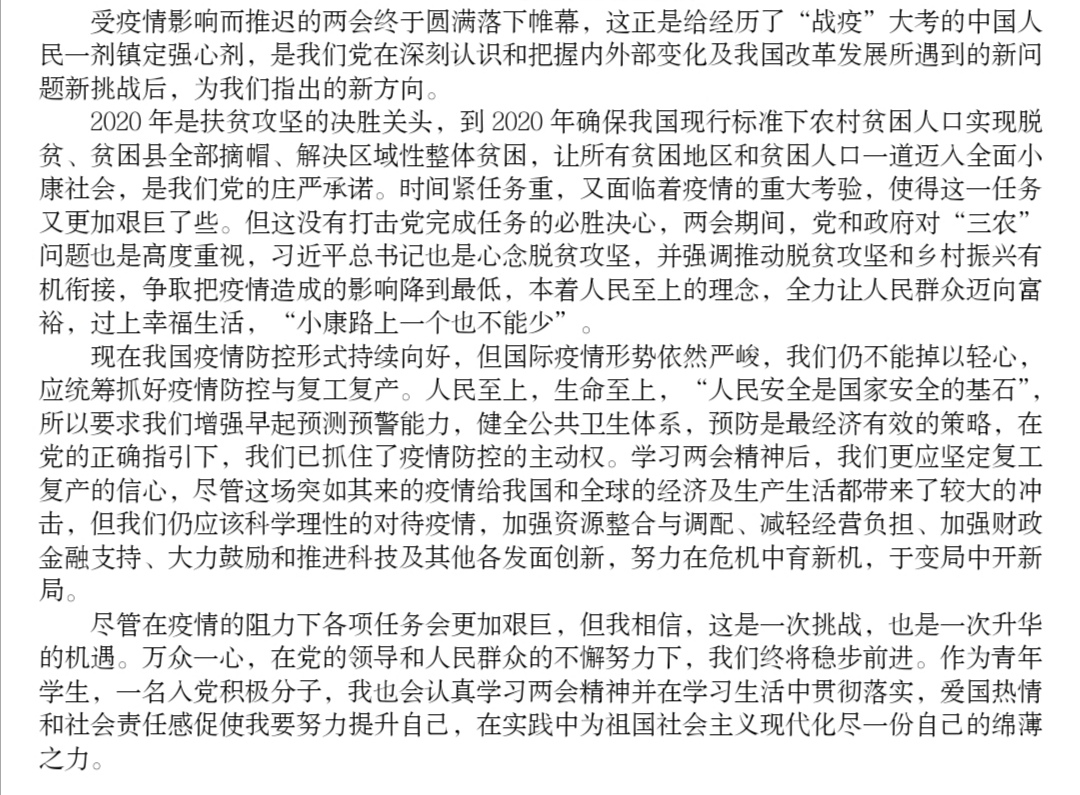 2020年全国两会,即中华人民共和国第十三届全国人民代表大会第三次会议和中国人民政治协商会议第十三届全国委员会第三次会议,于5月22日至26日在北京召开。yl23455永利“青马工程”第十期大学生骨干培训班积极组织学员结合“总书记两会系列讲话”展开第三次学习,在思想上“跟总书记上两会”,对相关内容进行了深入了解和思考。