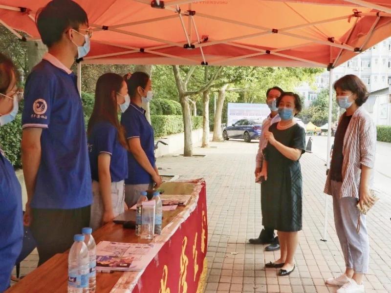 青春校园,喜迎莘莘学子。9月16日至17日,10449名来自全国各地的2020级新生陆续踏入yl23455永利,为美丽的济大校园注入了新鲜活力。为助力迎新工作顺利有序进行,学校团委组织学生会志愿者全力以赴,投入到火热的迎新工作中,开展一系列迎新活动,向家长及新生展示文明校园建设成果。9月16日下午,学校党委副书记张硕秋,学工处和团委相关负责同志走访慰问志愿者,对迎新志愿服务工作予以充分肯定。