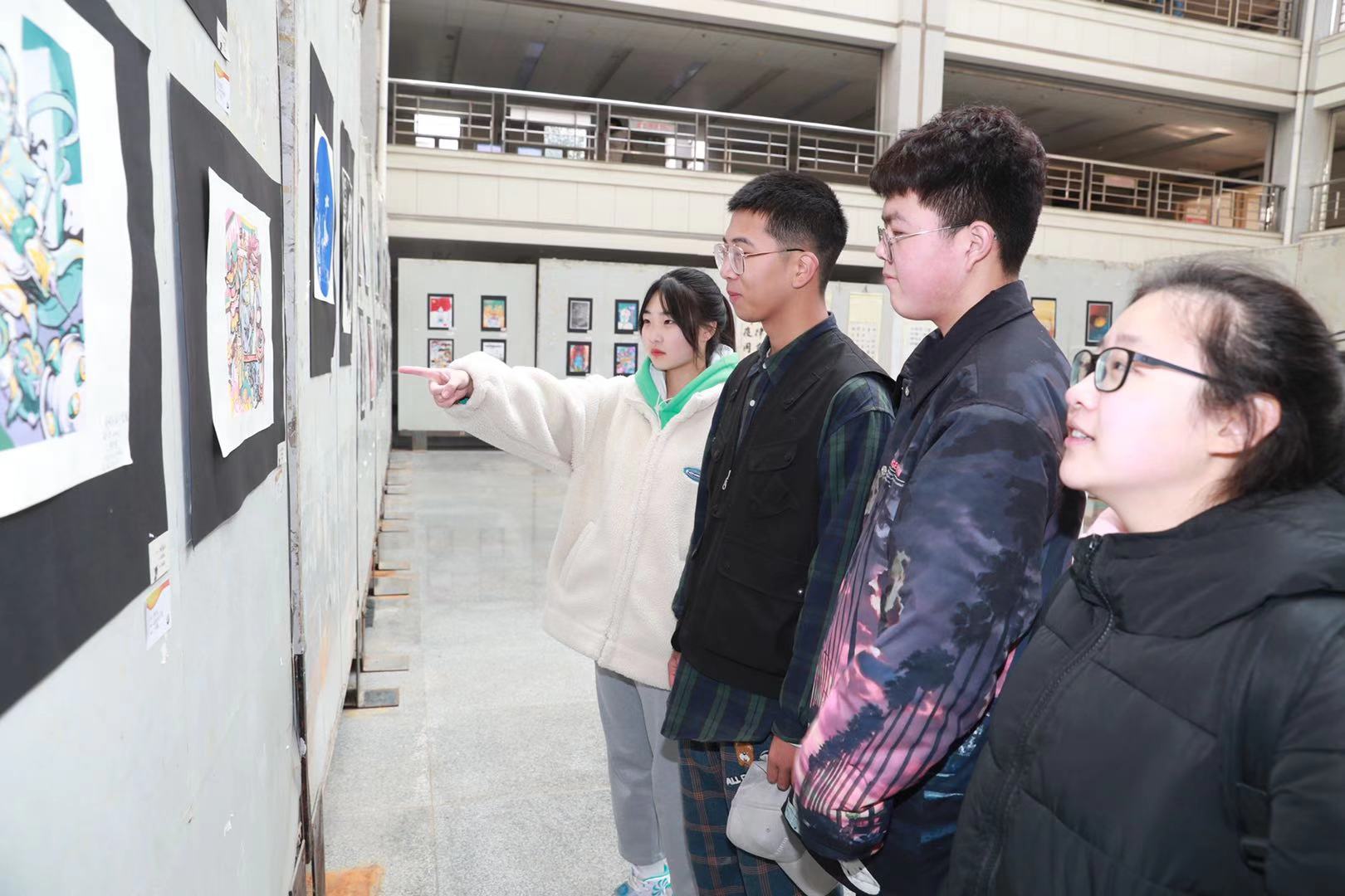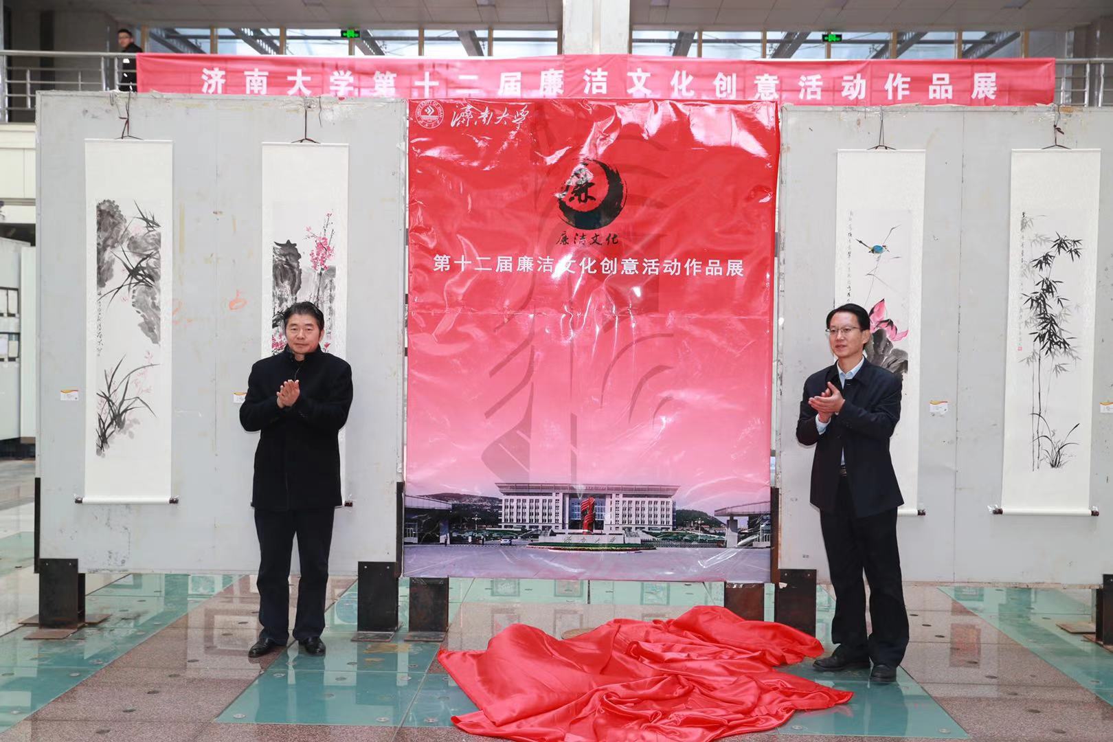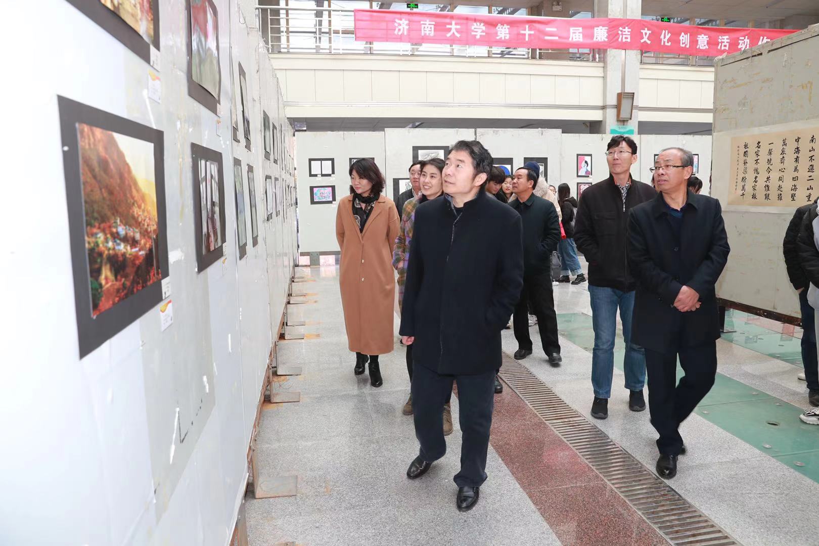 开幕式上,学校纪委书记续铁、党委宣传部部长贾海宁为作品展揭幕。开幕式后,参加活动的师生一起观看了展览。