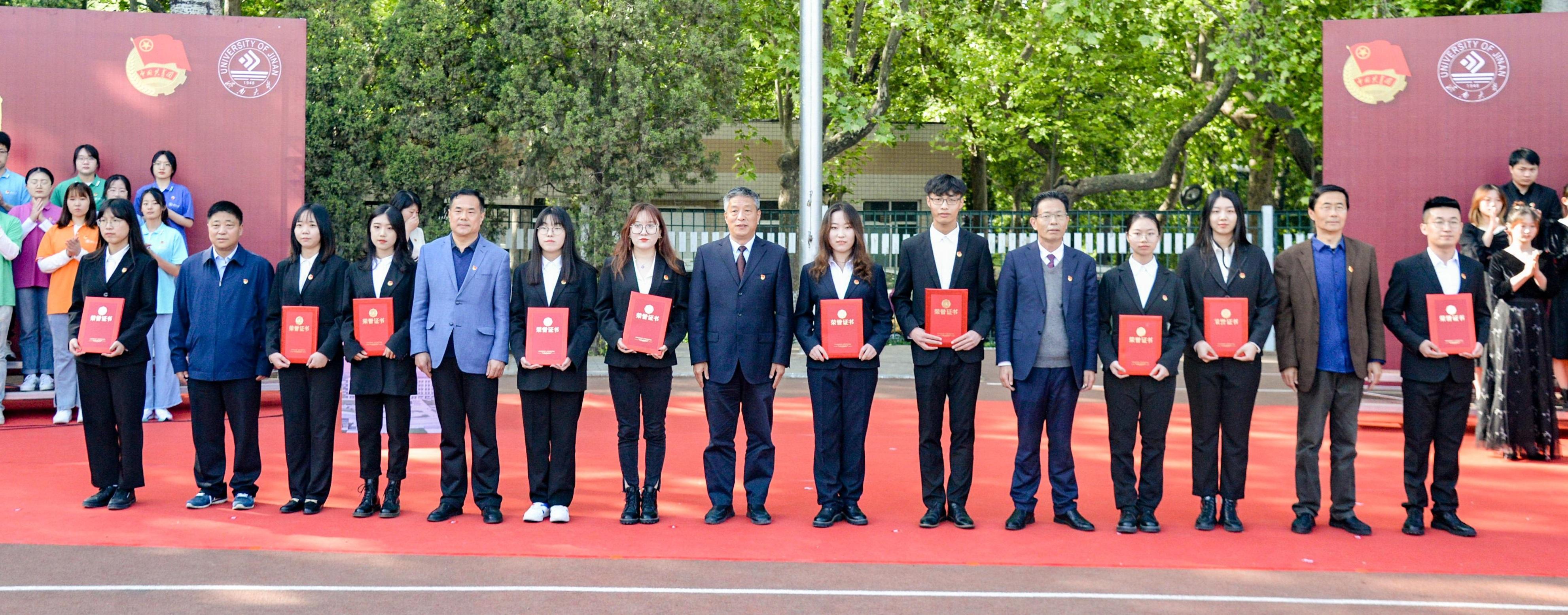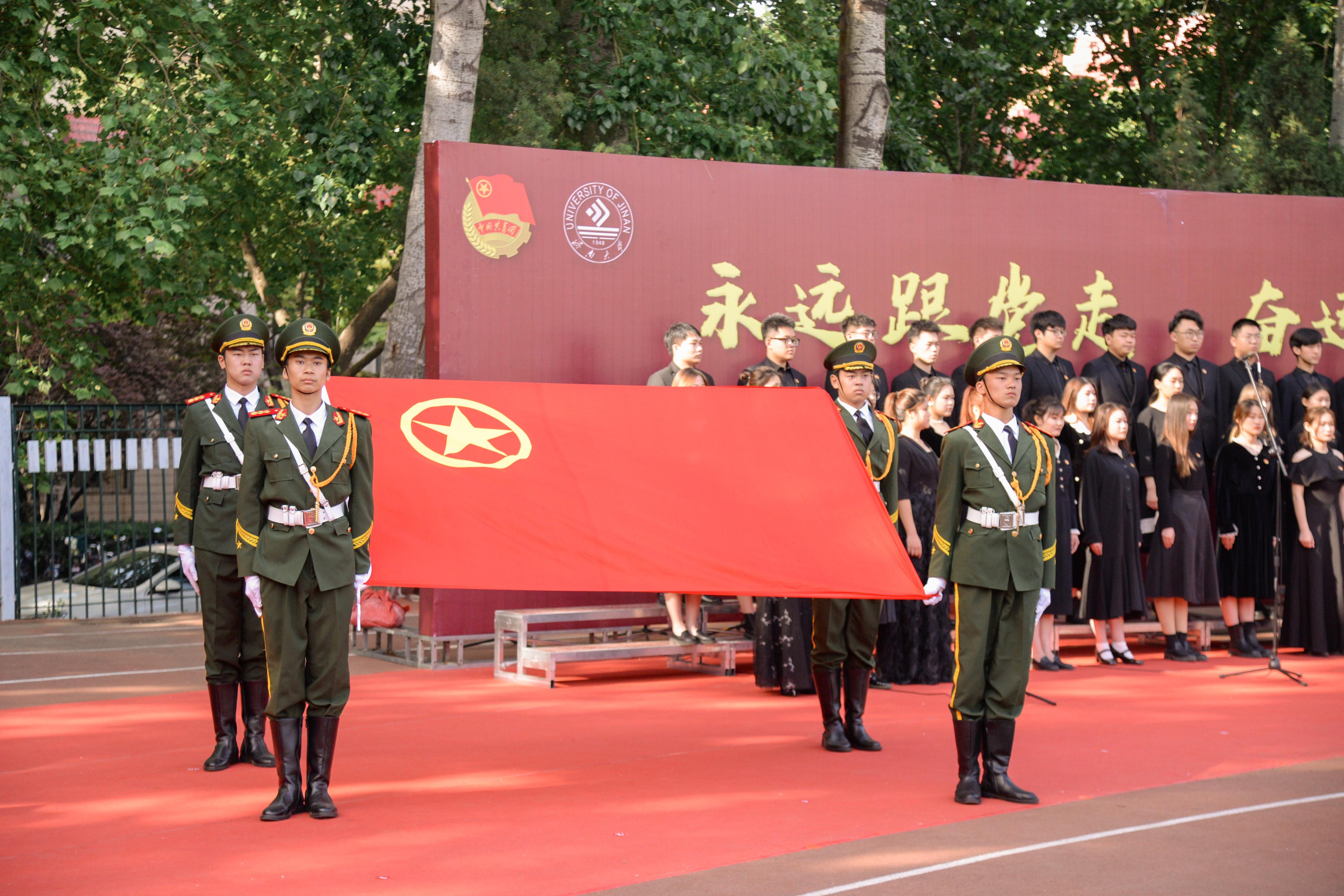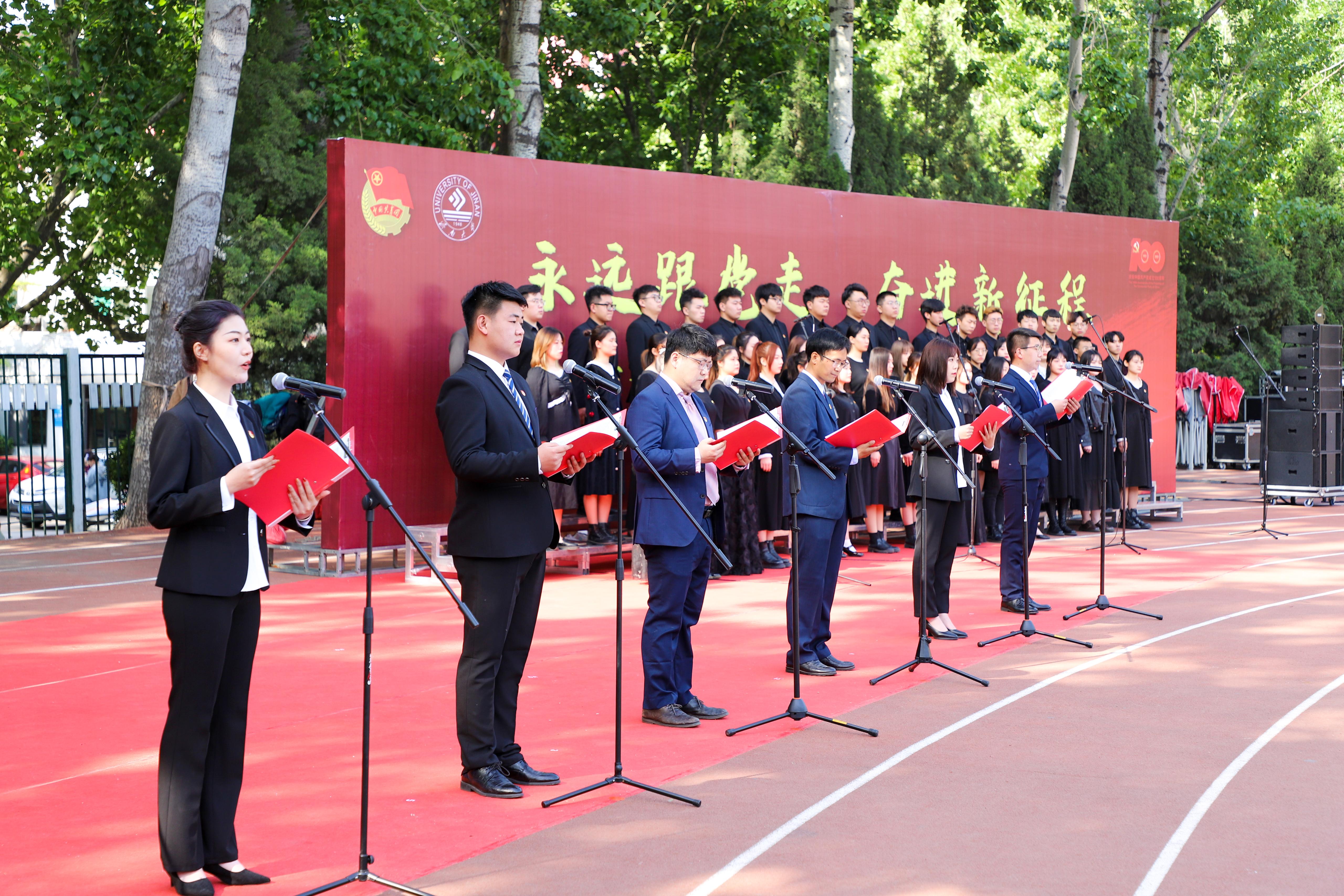 活动在悠扬的歌曲《唱支山歌给党听》中拉开序幕。本次主题团日活动分为升旗仪式、新发展团员入团仪式、共青团先进表彰、国旗下的演讲、校领导讲微团课五个环节,集中展示了共青团在党的领导下团结带领一代又一代有志青年干事创业、奋斗奉献的动人故事,展示了新时代济大青年爱国担当、奋发向上的精神风貌;共同致敬了带领人民走过百年峥嵘岁月的中国共产党,致敬了革命先驱的爱国情怀和英雄精神。