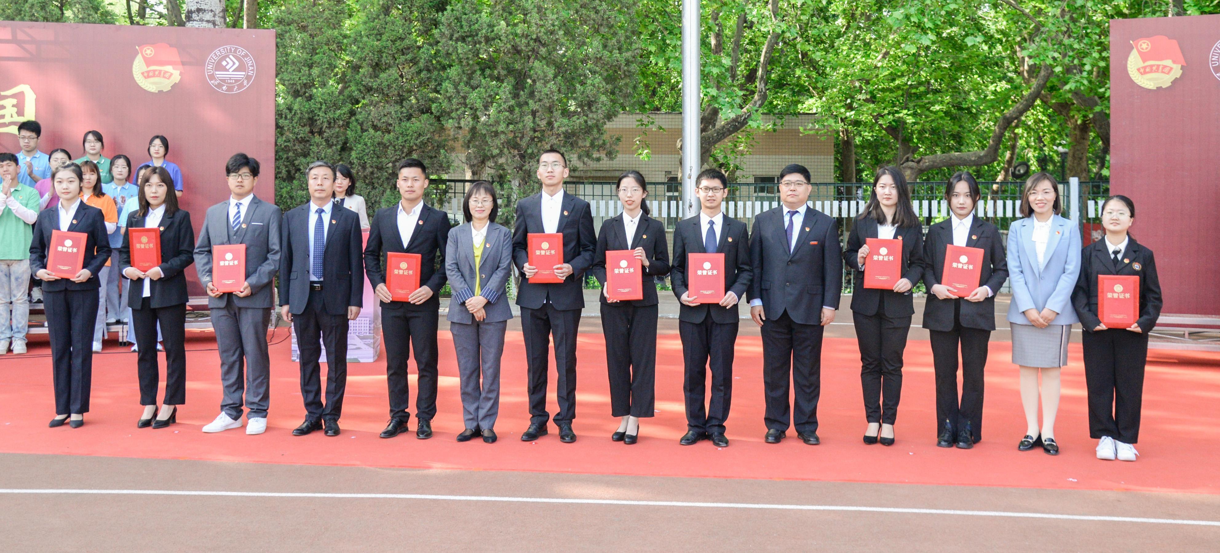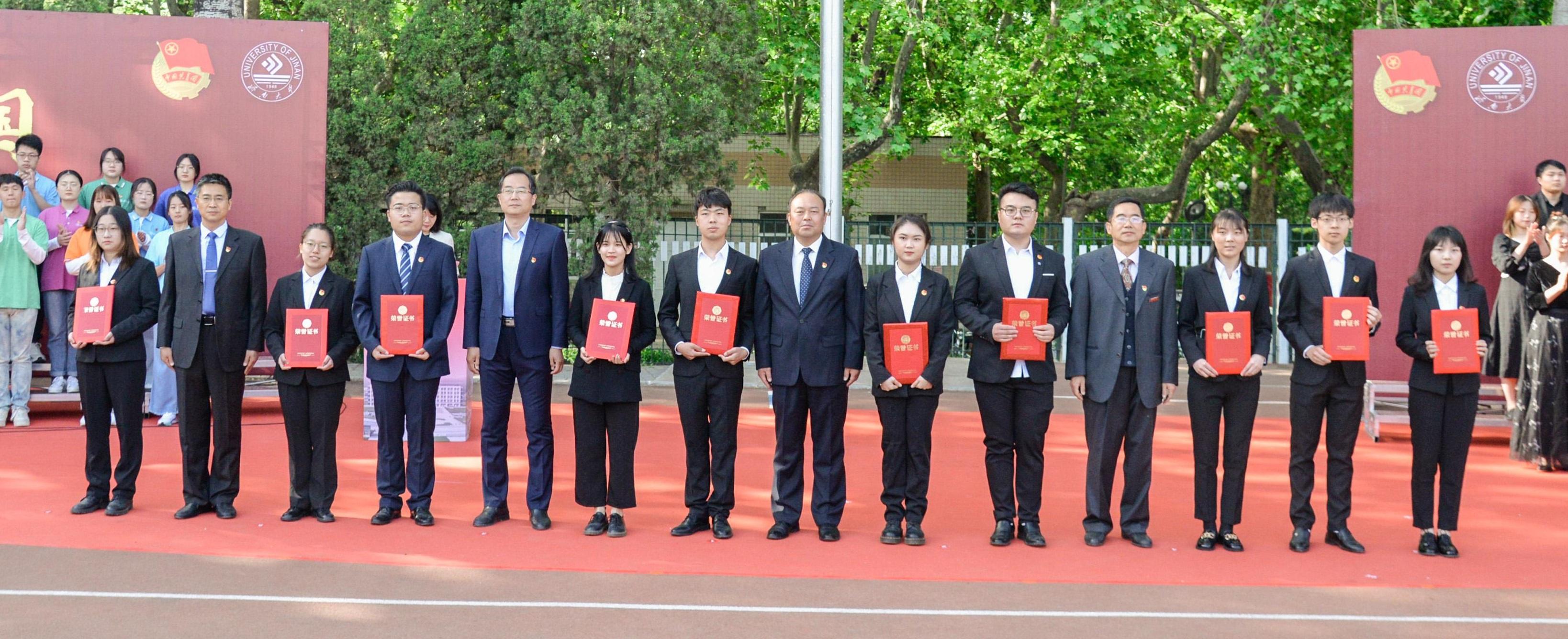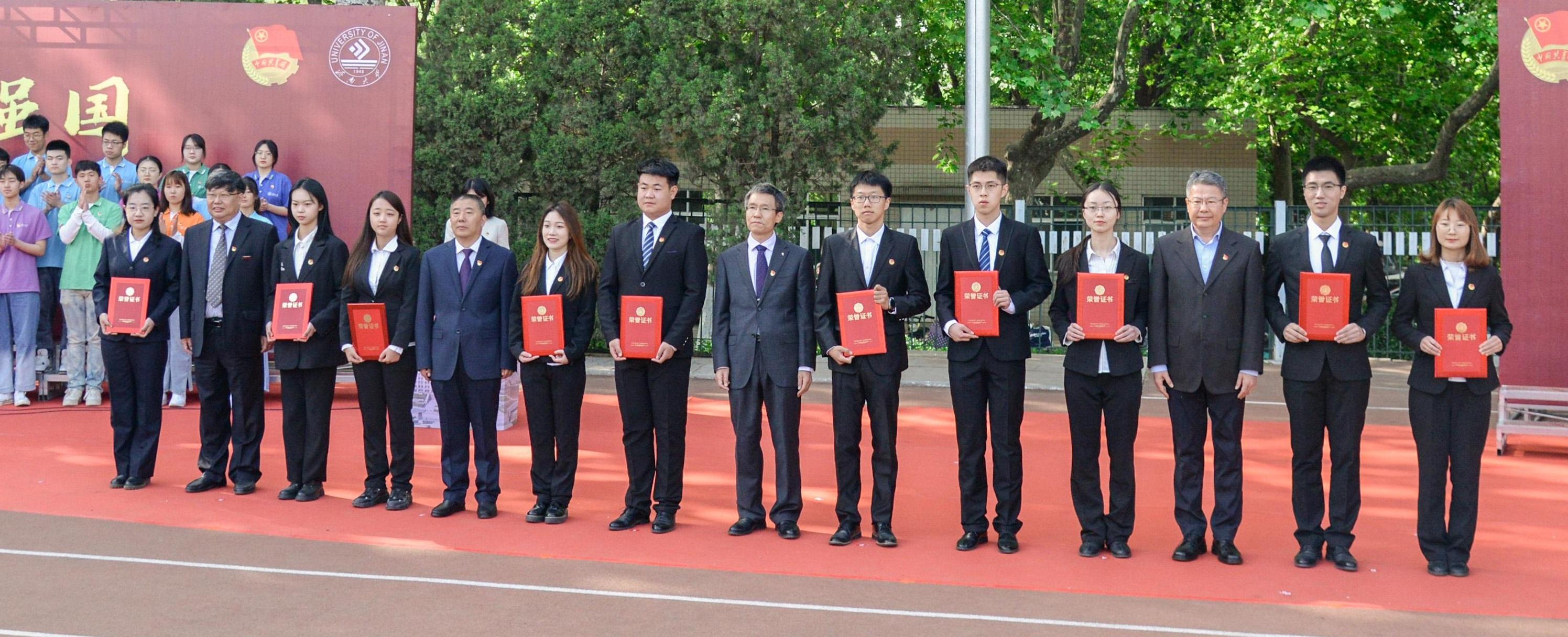 活动在悠扬的歌曲《唱支山歌给党听》中拉开序幕。本次主题团日活动分为升旗仪式、新发展团员入团仪式、共青团先进表彰、国旗下的演讲、校领导讲微团课五个环节,集中展示了共青团在党的领导下团结带领一代又一代有志青年干事创业、奋斗奉献的动人故事,展示了新时代济大青年爱国担当、奋发向上的精神风貌;共同致敬了带领人民走过百年峥嵘岁月的中国共产党,致敬了革命先驱的爱国情怀和英雄精神。