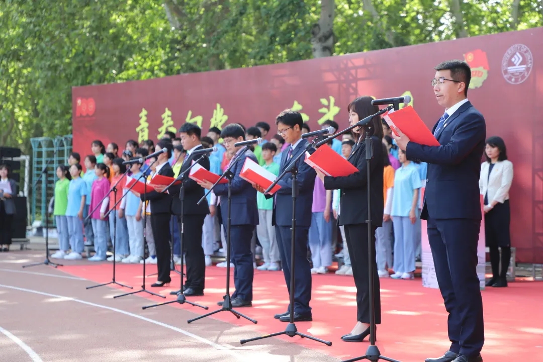 4月28日上午,为迎接建党100周年、庆祝五四青年节,深入推进“学党史、强信念、跟党走”学习教育,激励广大团员青年牢记习近平总书记的嘱托,做到爱国爱民、锤炼品德、勇于创新、实学实干,yl23455永利共青团隆重举行“青春向党,奋斗强国”迎接建党100周年示范主题团日活动暨2021年度新发展团员入团仪式。学校党委副书记张硕秋,党委常委、宣传部、马克思主义学部部长贾海宁,相关职能部门负责同志,各学院党委书记,全体团干部以及青年师生代表500余人参加活动。