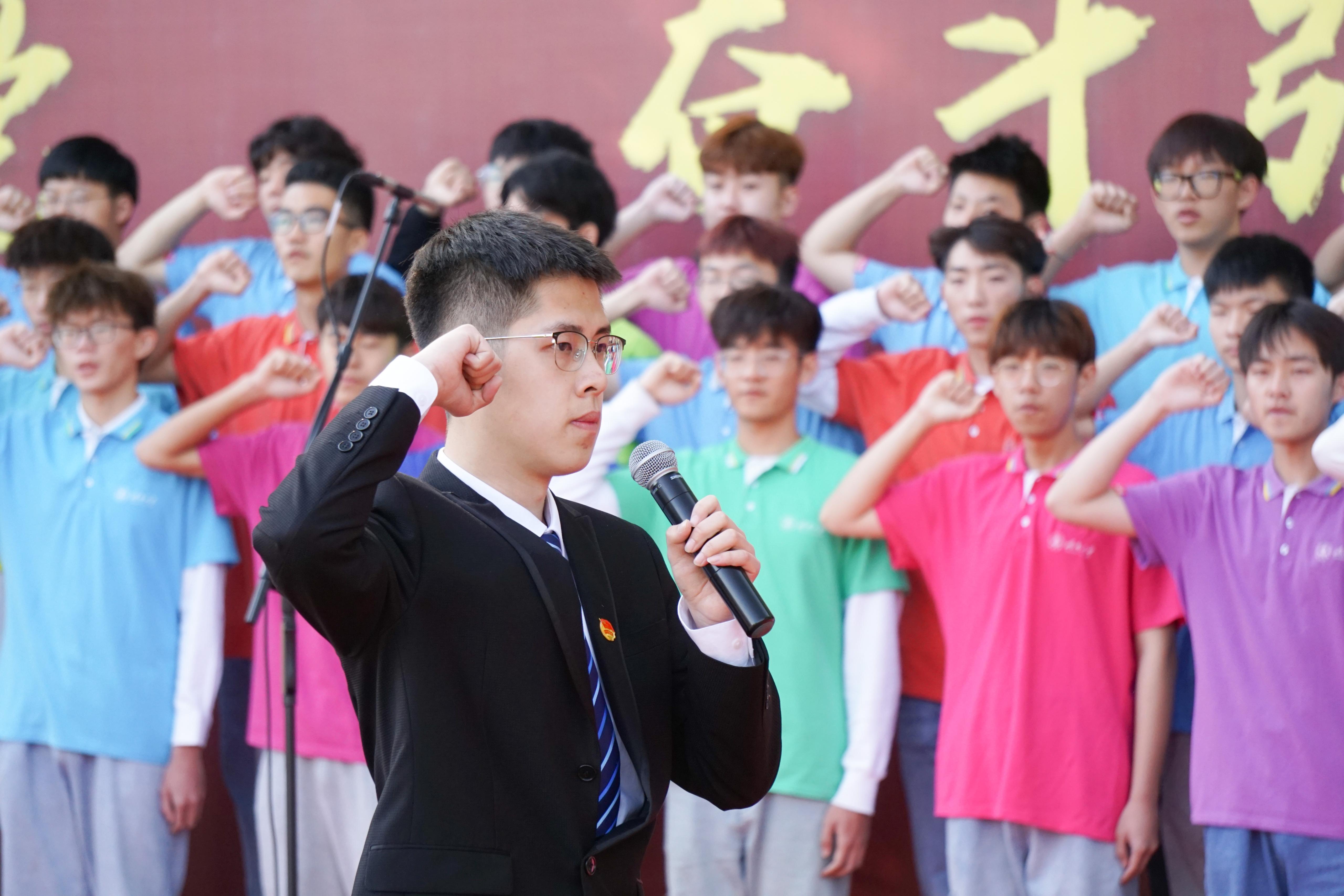 “我志愿加入中国共产主义青年团,坚决拥护中国共产党的领导……”活动现场,在领誓人的带领下,500多名新老团员共同举起右手,面向团旗庄严宣誓、重温入团誓词。一名团员就是一面旗帜,一枚团徽就意味着一份担当。为了唤醒团员身份意识,增强新发展团员的责任感、使命感、归属感,入团仪式还特意设计了优秀团员代表为新发展团员佩戴团徽环节。共青团员身份,既是荣誉,也是责任,有团员的地方就会有团徽,哪里有团员,团徽的影响力就会延伸到哪里。