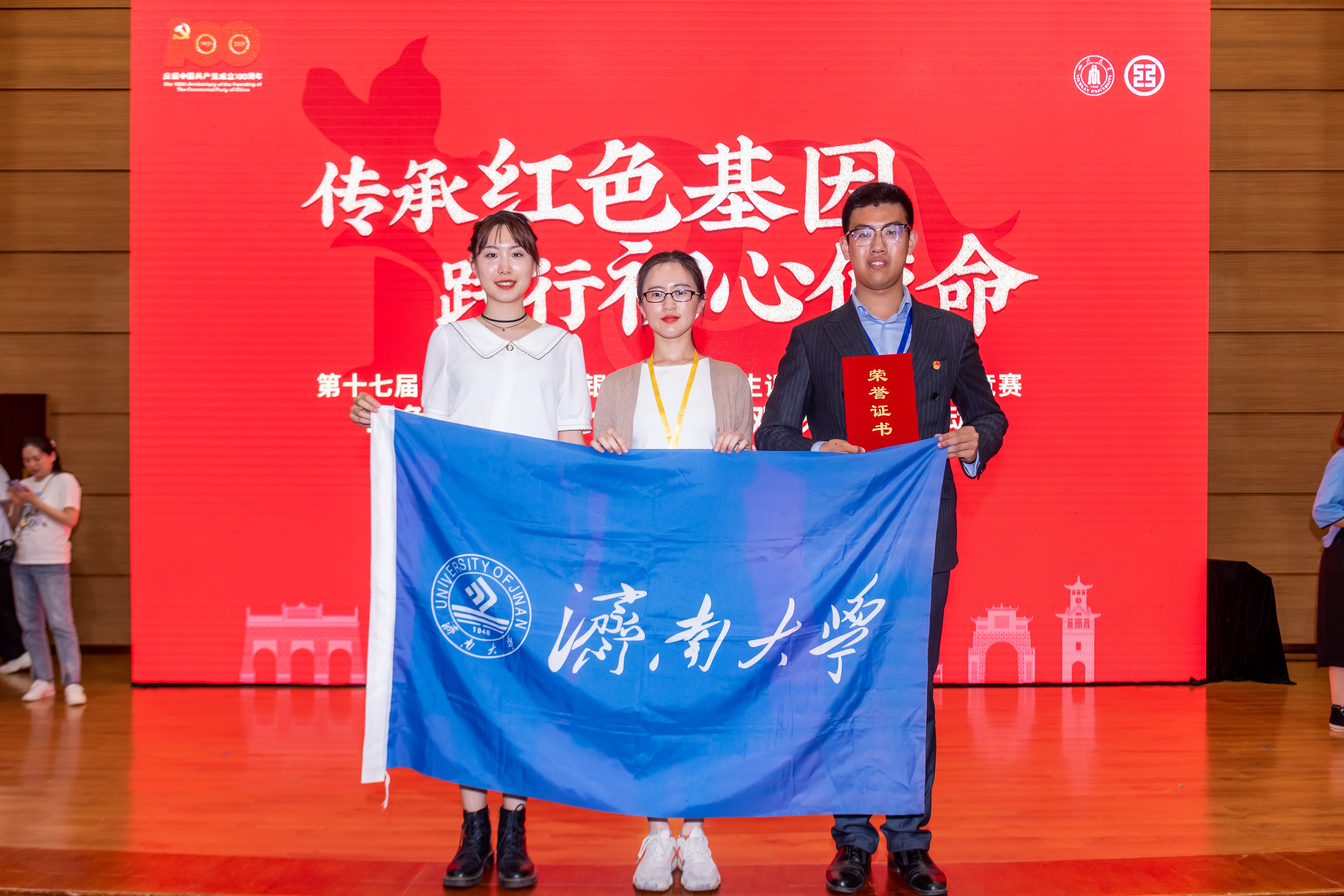 比赛前夕,学校党委副书记张硕秋慰问鼓励了参赛师生并代表学校向团队师生的辛勤付出表示感谢。张硕秋副书记指出,在庆祝建党100周年的时间节点上,我校学子以新时代红嫂精神作为对象开展的实践活动具有良好的教育示范意义,体现了大学生爱党爱国的责任担当意识,更体现了学校坚持“立德树人”根本任务的教育效果。张硕秋副书记对参赛团队提出三点要求:一是要认真备赛,展示济大学子的良好精神风貌;二是要增长见识,珍惜来之不易的学习机会;三是要发挥影响,让更多的同学感受、参与到红色教育活动中来。