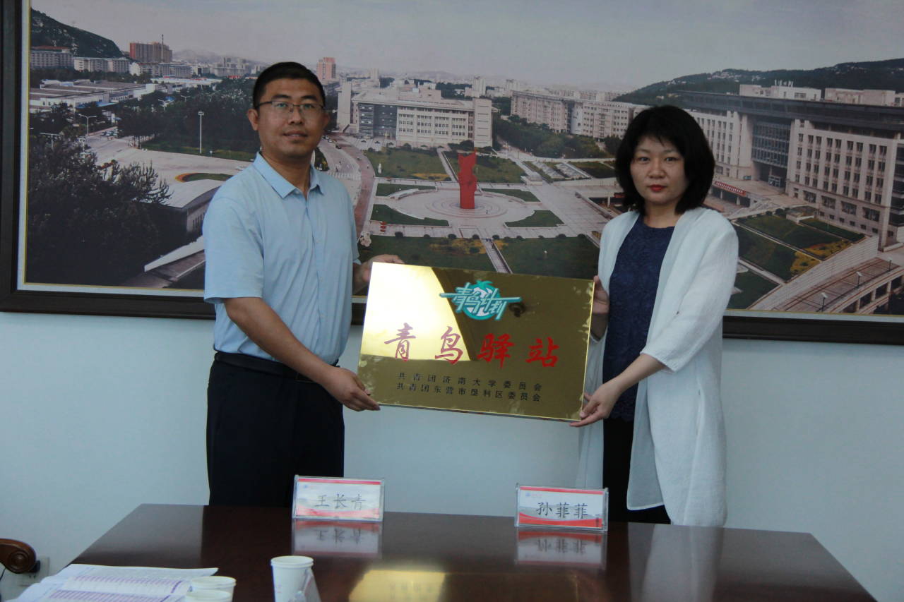 校团委书记孙菲菲与垦利团区委副书记王长青签署“青鸟计划”共建校地合作协议。校团委与垦利团区委联手“青鸟计划”建设大学生社会实践基地,将在校地合作中充分发挥双方的资源优势和组织优势,在人才培养、社会实践、志愿服务等方面开展深度合作,实现共建共赢。
