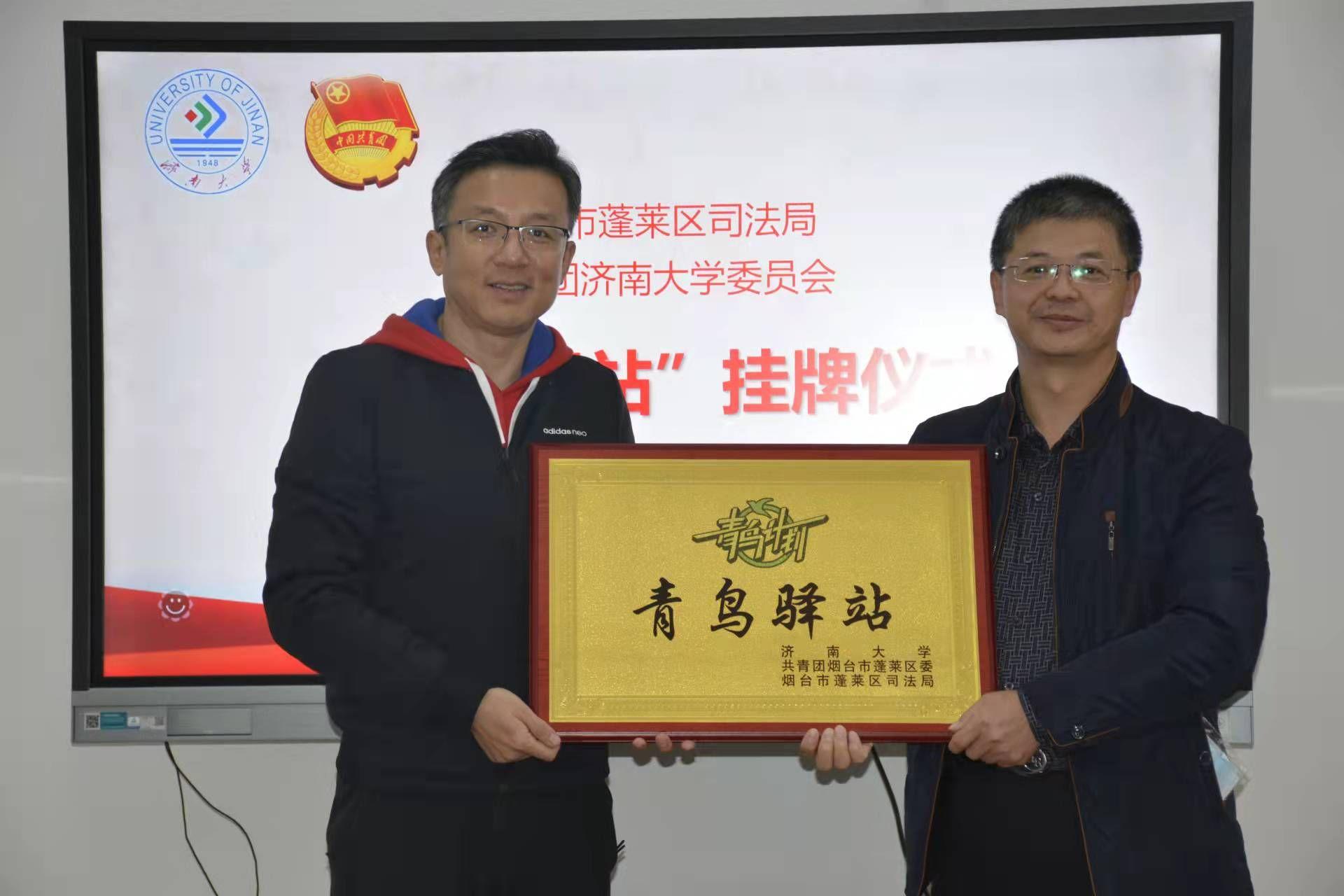 校团委副书记胡春毅与蓬莱区司法局局长车宗涛签署“青鸟驿站”共建校地合作协议。校团委与蓬莱区司法局联手“青鸟计划”建设大学生社会实践基地,将在校地合作中充分发挥双方的资源优势和组织优势,在人才培养、社会实践、志愿服务等方面开展深度合作,实现共建共赢。