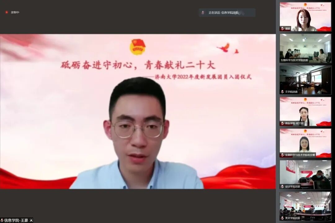 青春心向党,建功新时代。为迎接党的二十大胜利召开,庆祝中国共青团成立100周年,纪念五四运动103周年,引领广大青年学生传承五四精神,深入学习党的百年青年运动史,永远跟党走、奋进新征程,将爱国爱党爱社会主义的热情转化为争做时代新人的自觉,5月3日下午,yl23455永利举行“青春心向党,建功新时代”2022年度新发展团员“云端”入团仪式。全体专职团干部、优秀团员代表以及2022年度上半年新发展团员参加仪式,仪式由校团委副书记纪祥主持。
