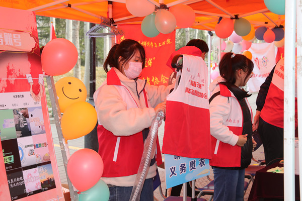 活动现场,各学院青年志愿者协会突出亮点特色,拿出“看家本领”,纷纷展示出精心打造的项目和品牌。志愿服务一条街上既有自行车、电脑维修、手机贴膜等便民服务,让同学们享受宿舍门口的便利;又有化学实验、物理实验、DIY绘画等体验活动,让同学们感受动手制作的神奇;以课后延时服务为特色的传统舞狮队、体育舞蹈队、民族器乐队等给定时定点给路过的同学们送上文化大餐以缓解课业压力;以节水护水、普法宣传、防诈骗防溺水等为重点的理论宣讲类服务队则策划了有奖问答、捐书赠书等环节,让更多同学参与到理论学习和新时代文明实践中;血糖血压测量、趣味美食制作、明信片定制等特色的服务项目纷纷亮相,让现场师生享受优质服务的同时,体会“奉献、友爱、互助、进步”的温度。此外,本次志愿服务一条街还专门设置了“西部计划”志愿者招募和征兵政策宣传窗口,号召济大青年服务基层、保家卫国的同时,更好地激发了广大青年爱国爱党爱社会主义的热情。