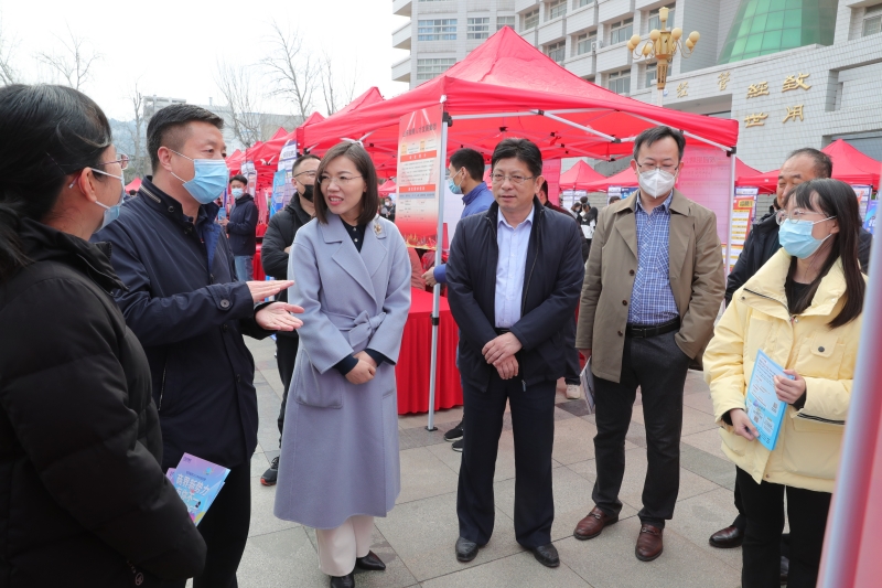 为做好2023届毕业生就业服务工作,搭建用人单位与毕业生之间的桥梁,3月17日上午,商学院2023年春季经管类专场招聘会在舜耕校区经管楼前广场举行。学校党委副书记杨景波、党委学生工作部(处)、校团委、商学院相关负责人现场指导。
