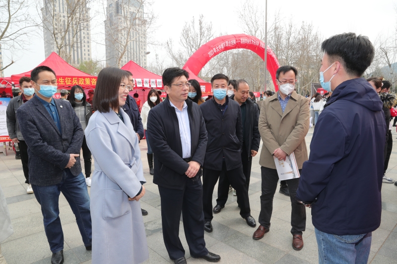 招聘会现场,杨景波与参会单位和学生亲切交流,聆听用人单位对学校人才培养、就业工作的意见建议;询问关怀毕业生的就业意向与求职进展,鼓励学生树立正确择业观,积极把握后疫情时代的机遇,找准切入点更好更快地实现稳步就业,在各行各业为国家和社会贡献青春才智。他建议学院要通过开展春季促就业攻坚行动,聚焦当前促就业工作重点难点,把“走出去”和“请进来”相结合,挖掘开拓就业渠道,突出精准做实做细就业指导帮扶,加力加快推进就业工作进程。