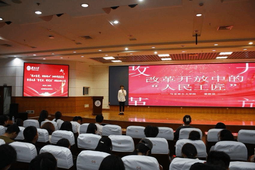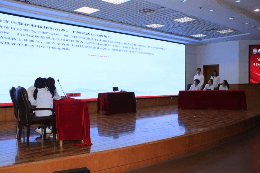 知识问答竞赛的现场氛围紧张激烈,选手们思维敏捷,沉着作答,展现了出色的法治素养和应变能力。比赛现场还邀请了来自政法学院的王烁焱与马克思主义学院董静贤带来“青年政治佳”宣讲,他们用饱满的热情、真挚的感情和精妙的语言,讲述时代发展下青年人的使命担当,赢得了评委和观众的一致好评。
