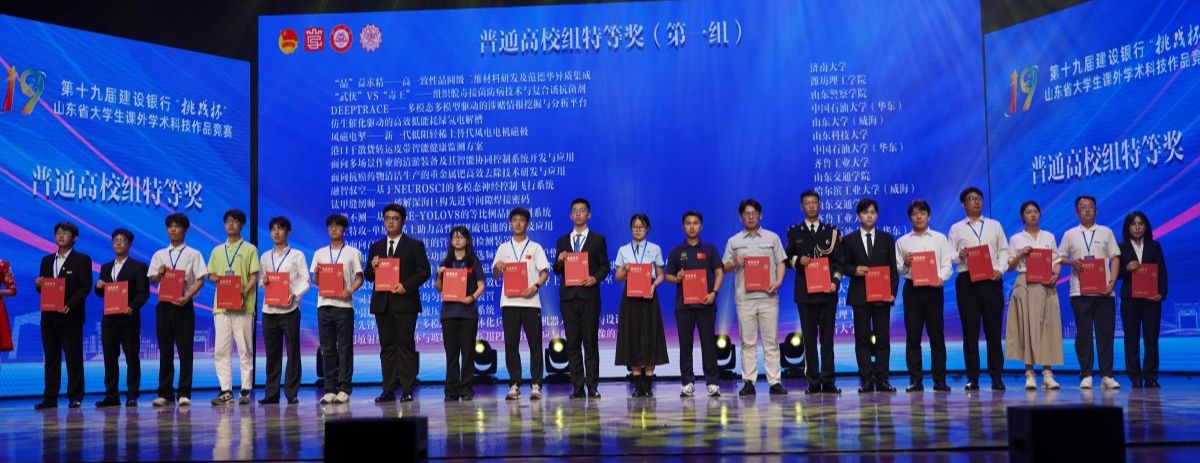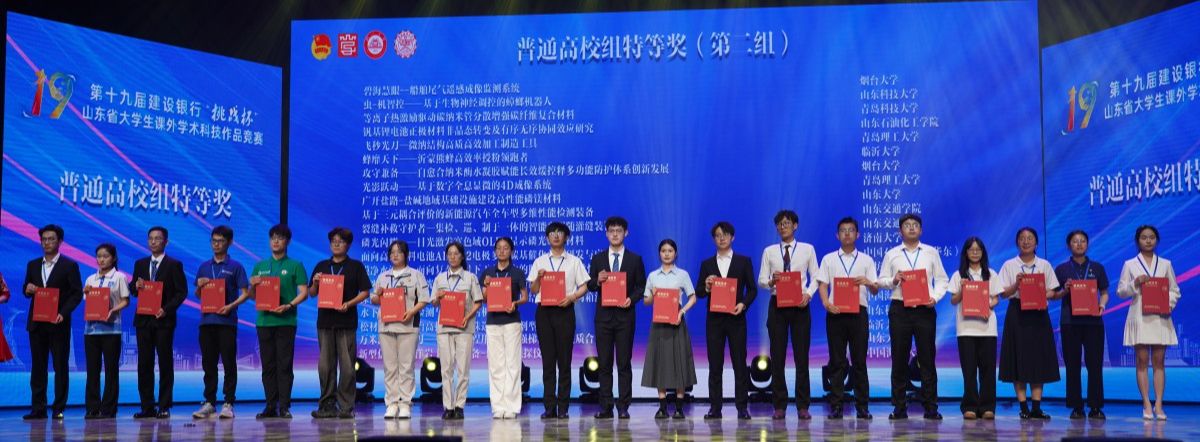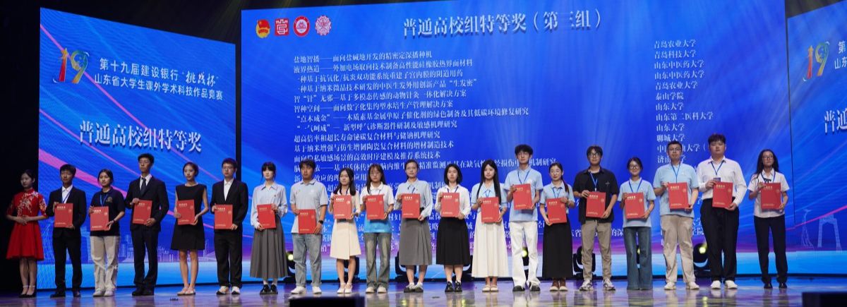 6月4日至6日,由共青团山东省委、山东省科学技术协会、山东省教育厅、山东省科技厅、山东社会科学院、山东省学生联合会主办的第十九届“挑战杯”山东省大学生课外学术科技作品竞赛终审决赛(普通高校组)在临沂大学落幕。我校参赛团队再创佳绩,获特等奖3项、一等奖5项、二等奖3项、三等奖7项。