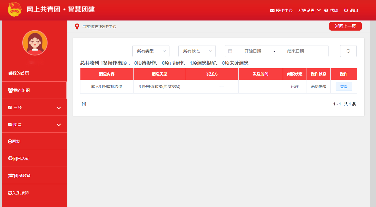 申请完成之后,可以在操作中心中查询发起的申请和处理状态。