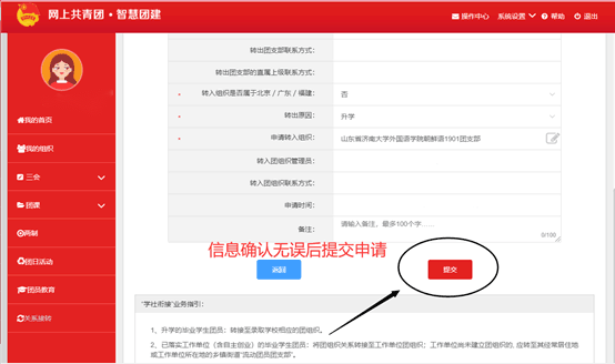 其中,北京、广东、福建地区的新生团员确保可登录本省(市)团建系统或共青团服务系统,申请转接团组织关系,按照相关要求进行操作即可。