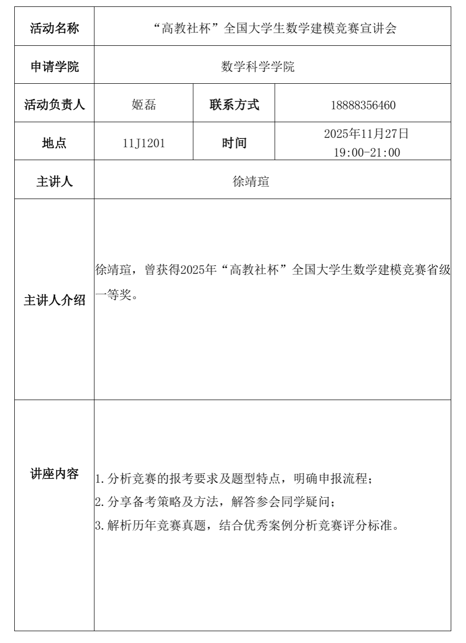 青春创新创业论坛——“高教社杯”全国大学生数学建模竞赛宣讲会
