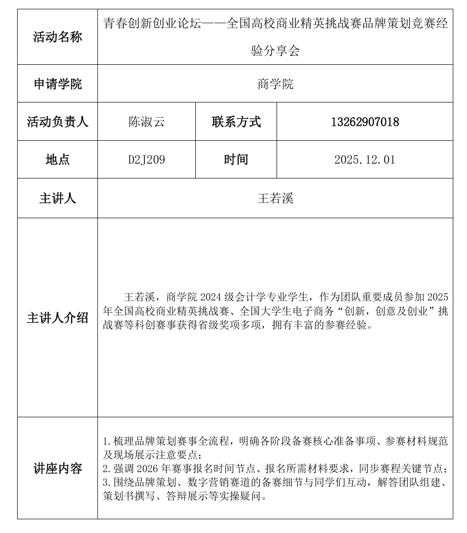 青春创新创业论坛——全国高校商业精英挑战赛品牌策划竞赛经验分享会