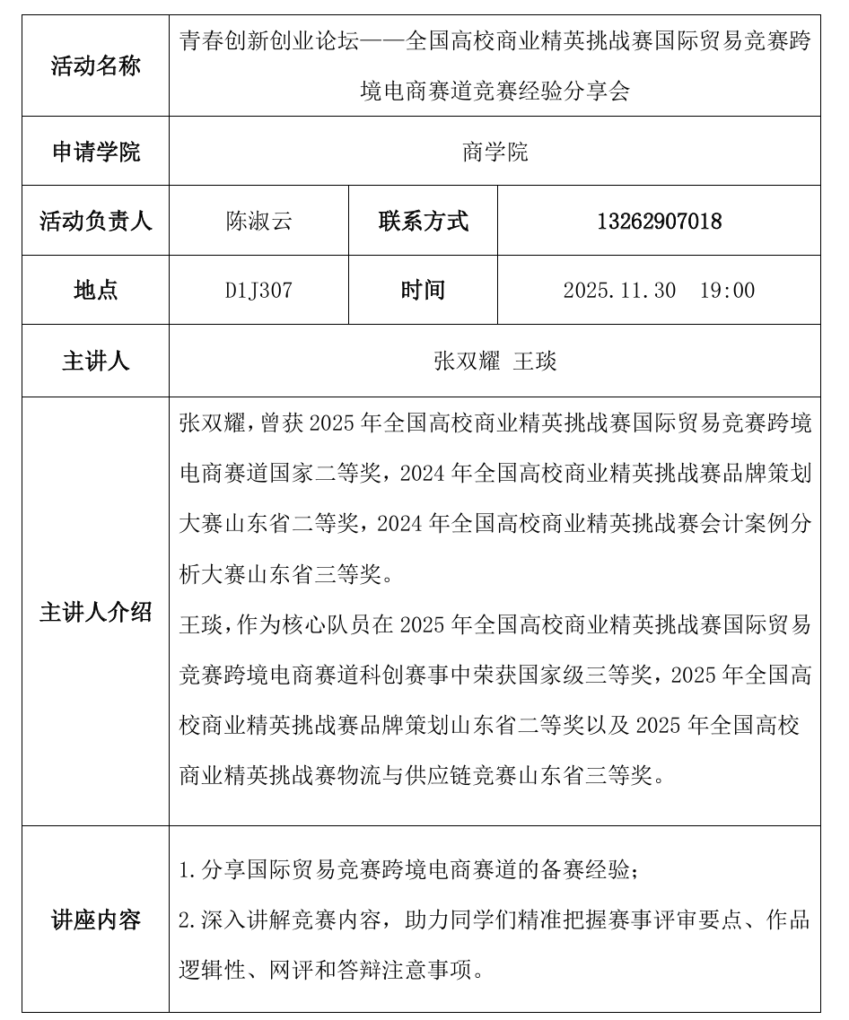 青春创新创业论坛——全国高校商业精英挑战赛国际贸易竞赛跨境电商赛道竞赛经验分享会