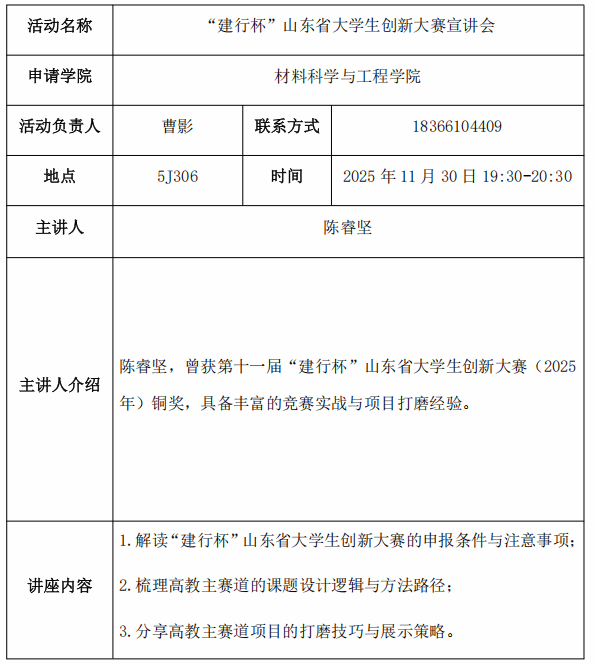 青春创业论坛——“建行杯”山东省大学生创新大赛宣讲会