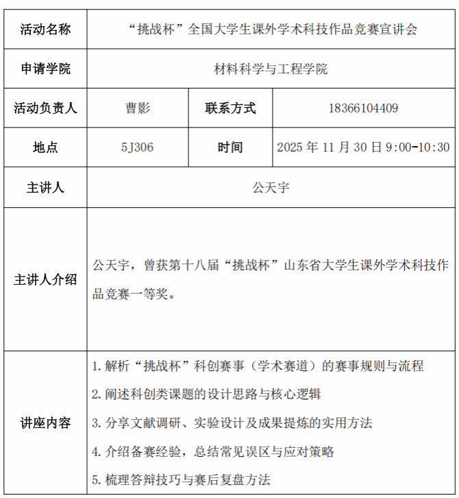 青春创新创业论坛——“挑战杯”全国大学生课外学术科技作品竞赛宣讲会