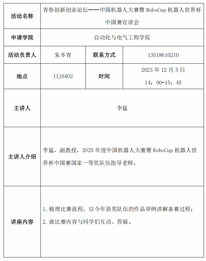 青春创新创业论坛——中国机器人大赛暨RoboCup机器人世界杯中国赛宣讲会