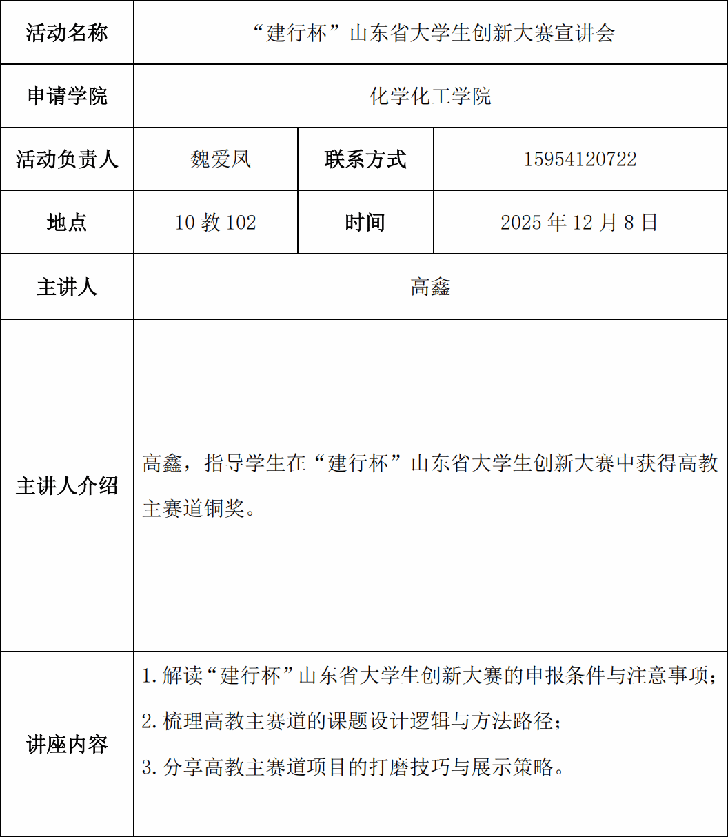 青春创新创业论坛--“建行杯”山东省大学生创新大赛宣讲会