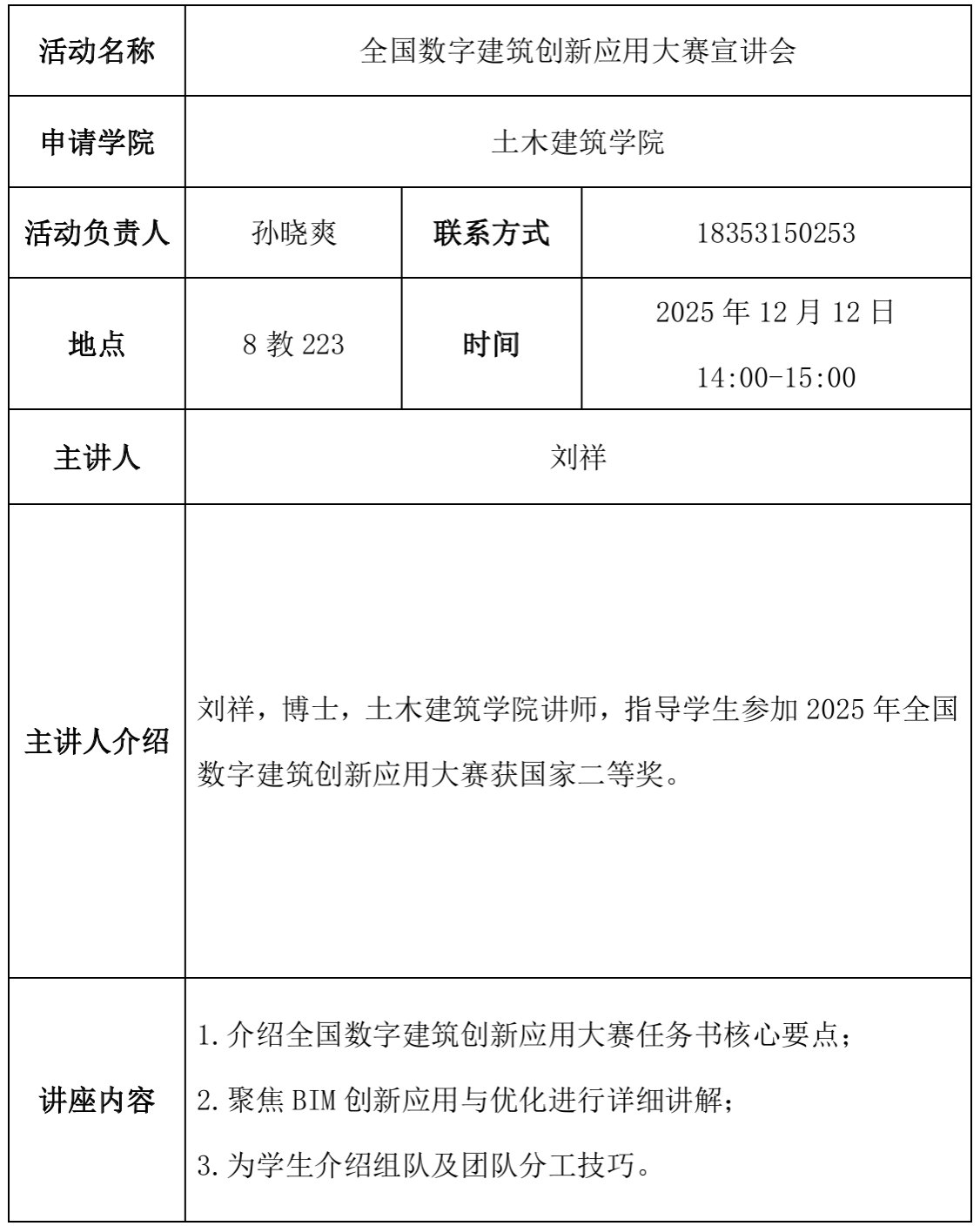 青春创新创业论坛--全国数字建筑创新应用大赛宣讲会