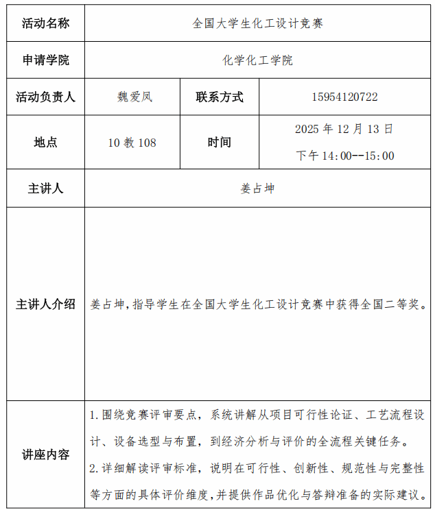 青春创新创业论坛——全国大学生化工设计竞赛