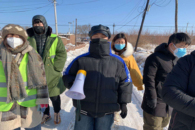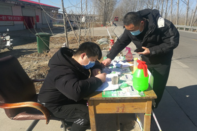 从2月14日开始至今,阎店村的书记和会计带领我们五名志愿者在站点劝阻过往的车辆与行人,检查出入证以及检查口罩是否佩戴并做好出行记录,之后,由阎店村副书记在封路站点值守,由于大雪封路,宣传也要做到位。因此,阎店村的书记与会计带领我们走进屯中,用喇叭进行宣传“勤洗手,不聚集,出门戴口罩”,以此来增加人民群众的危机意识与防控意识,希望可以断绝病毒的传播途径,保护村民的安全。