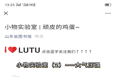 新冠肺炎疫情阻挡了2020年春季学期的脚步,但却阻挡不了物院学子学习的热情。物理科学与技术学院青年志愿者协会于3月22日在线上举办了实验活动,本次活动采用线上录播的形式,将录好的内容发给山东省少儿图书馆,在此平台上为广大少年儿童普及科学知识,传播实践精神,让孩子们走进科学,本次活动的主题为瓶吞鸡蛋实验。