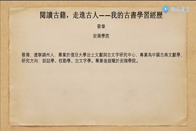 4月2日晚七点,文学院“舜耕学术系列讲座2020”第四场如期举行,邀请复旦大学出土文献与古文字研究中心博士、安顺学院图书馆蔡伟老师,做了《阅读古籍、走进古人——我的古书学习经历》的讲座。本次讲座采用腾讯直播的方式,一百六十多名院内外师生参加线上交流互动。