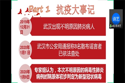 虽然同学们还未回到校园中,但他们积极地借助网络来展现自己,表达着自己的抗疫感悟。相信此次PPT大赛不仅能够提高同学们的PPT制作水平,更给了同学们一个展现自我,互相交流的平台,进而开阔同学们的思想,表达对战疫必胜的坚定信心。