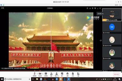 在人数到齐后,本次线上升旗活动由主持人宣布正式开始。国旗升起,学生们肃立于屏幕前向国旗行注目礼,奏唱国歌,并且一起观看了“青春赞歌——五四青年节”教育视频。之后,由学生代表和教师代表进行国旗下演讲,演讲内容深刻明了,让同学们认识到“青年兴则国家兴,青年强则国家强”的道理,了解了作为一种文化符号的 “五四青年节”,更明白了“五四青年节”要牢记历史、热爱国家、继承祖辈们的遗志的深刻含义。至此,本次“五·四升旗仪式”活动圆满完成。