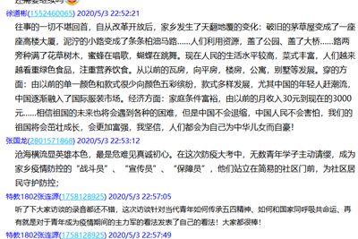 教心学院青年志愿者张国龙表示:“沧海横流显英雄本色,最是危难见真诚初心。”在这次防疫大考中,无数青年学子主动请缨,成为家乡疫情防控的“战斗员”、“宣传员”、“保障员”,他们站立在社区前,为社区居民守护防控,“我们要以他们为榜样,将五四精神发扬光大。”;青年志愿者高小婷说:“五四精神让我们深刻认识到自己身上的担当与责任,作为当代青年,我们应当与祖国同呼吸共命运。”她表示,将与其他青年志愿者一起继续努力学习、奋发向上、勇担责任、共筑梦想