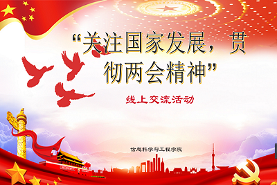 十三届全国人大三次会议、全国政协十三届三次会议分别于5月22日和5月21日在北京召开。受疫情影响,今年的全国两会开幕时间较往年有所推迟。信息科学与工程学院的师生热切关注全国两会的开幕,学院于5月25日组织学生观看两会开幕式,并开展了两会线上交流会,深入学习贯彻“两会”精神。