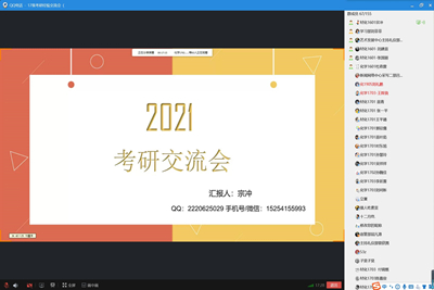 为了进一步提高学生自我教育、自我管理和自我学习的能力,同时帮助同学们明确考研目标,掌握相关考研技巧,化学化工学院团委学生会学习部于2020年6月2日晚上6点,面向学院17级在校生以及18级、19级部分学生通过线上QQ群直播的形式开展了“蒲公英互助学习行动——考研经验交流会”活动。