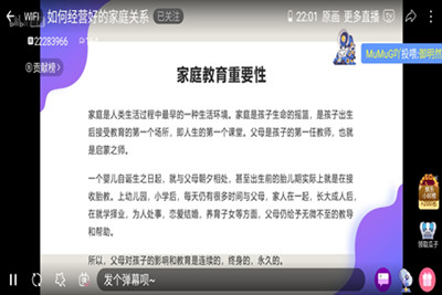 “家庭教育是一朵小小的火苗,虽然存在,但很微弱,需要我们不断添柴来增加其燃烧程度”。为促进平等家庭关系的发展,加强人们对家庭教育的重视程度,教育与心理科学学院学子于6月9日晚7点半在bilibili举办了一场关于家庭教育的直播宣讲会,主讲人为“哲心谈教育”的家庭教育公益团队,该团队由教心学院17级张泽鑫、李忠浩、张慧琴等同学构成。
