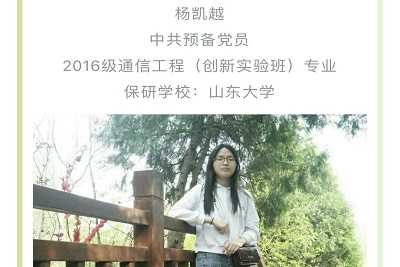 2016级计算机科学与技术专业的吴鹏超同学,获得苏州大学的保研资格。他告诉我们,努力要在平时,获得保研资格不是一件轻松的事情,需要付出比别人多几倍的努力。另外还有许多的学长学姐也分享了他们的心得。刘露同学,是2015级集成电路设计与集成系统专业的同学,中国共产党党员,获得山东大学的保研资格,目前在山东大学微电子学院研一就读。王彪同学也是中国共产党党员,他是2015级通信工程专业的学生,被保研于北京航空航天大学,目前在该大学研一就读。杨凯越同学是中共预备党员,2016级通信工程(创新实验班)专业,获得山东大学的保研资格。还有其他的学姐学长,他们讲述了在保研这条道路上所付出的努力,所经历的艰辛,但成功的那一刻,一切无悔。