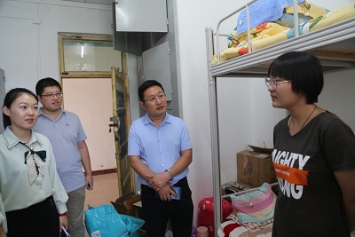 院领导先后到了男生宿舍、女生宿舍,每到一间宿舍,都受到了学生们的热烈欢迎,学生积极与领导交流宿舍情况,院领导与同学们进行了亲切交谈。