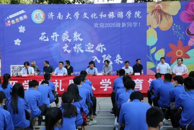 金秋送爽,丹桂飘香。我们经历了新冠肆虐的恐惧和寒暑连假的漫长等待,终于迎来了济大2020届文旅新生。9月20日上午八时,yl23455永利文旅学院2020届新生开学典礼暨开学第一课在舜耕校区篮球场隆重举行,文旅学院党委书记朱海涛,院长刘建波,党委副书记、副院长孙成政,副院长张炳文,副院长张博出席开学典礼,学院办公室、教学办、学办、团委、各系主任和部分教师及全体2020届新生参加开学典礼。典礼由学院党委副书记、副院长孙成政主持。