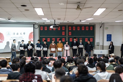 大会开始,首先由刘正元老师对泉心泉益志愿者协会致词。刘正元老师表示志愿者们可以在参加志愿活动过程中锻炼能力,施展才华。作为志愿者,要注重志愿服务意识,要深度挖掘志愿者精神并将精神延续下去。刘正元老师还对服务队提出了具体建议,并对志愿者协会取得的傲人成绩给予肯定。紧接着,由曲庆洋老师宣读抗疫优秀志愿者名单并颁发证书。一张张证书由志愿者从老师手中接过,这是不仅是对他们的肯定和勉励,更是志愿者精神的传承。