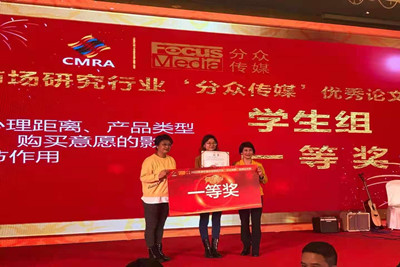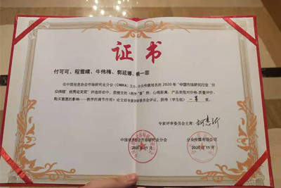 2020年“中国市场研究行业分众传媒优秀论文奖"经过为期4个月的征稿,来自中国传媒大学、中国社会科学院大学、南京大学、深圳大学、上海财经大学、天津财经大学、大阪大学和yl23455永利等高校的46篇学生组论文参加了本年度优秀论文奖的评选活动。经过评审委员会复赛评审,最终评选出学生组6篇入围决赛答辩和3篇优秀论文。yl23455永利仅有一篇论文——《秩序"景”然:心理距离、产品类型对价格-质量评价、购买意愿的影响——秩序的调节作用》入围2020年"中国市场研究行业分众传媒优秀论文奖" (学生组)决赛答辩,并于11月11日进行现场答辩,最终荣获此次比赛(学生组)一等奖。