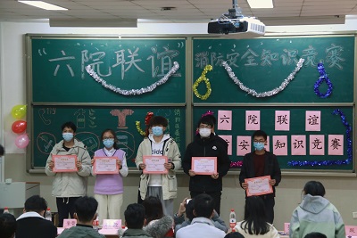 在主持人的主持下,竞赛氛围在比赛之前便热火朝天,多个参赛小组跃跃欲试。本次比赛内容共分为传统题和风险题。在参赛人员和评委落座之后,传统题竞赛紧随而至,单选题、多选题、判断题、红包运气答题,多样的活动内容使比赛气氛变得紧张、刺激。传统赛答题考验了同学们的消防知识储量,补缺了同学们的知识缺陷。接下来便是新颖的风险题,不仅包含了消防知识,也考验着同学的综合素养。在比赛结束前,主持人肖健播放了一段《烈火英雄》的剪辑短片,歌颂了消防英雄的舍己为人、大爱无私。最终,由主持人宣布竞赛排名,由组织者为获奖小组颁奖。自此,“六院联谊”消防安全知识竞赛圆满落下帷幕。