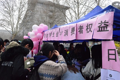 国际消费者权益日来临之际,为增进同学们维护自身权益的意识和提升同学们维权能力,3月15日上午,政法学院学生会在八食广场推出了以“315消费者权益保护日”为主题的有奖知识问答活动。本次活动采用有奖问答的方式,让同学们从趣味中了解到维权知识,取得了良好的效果。