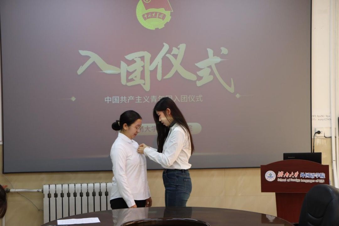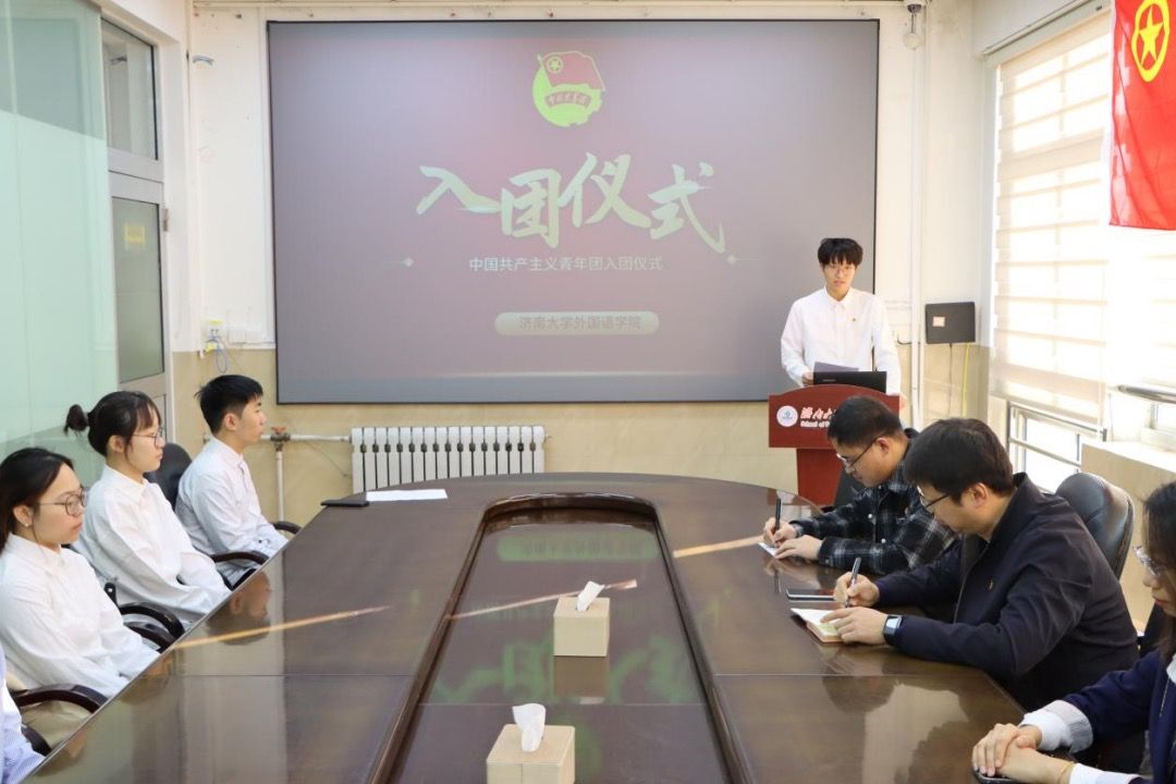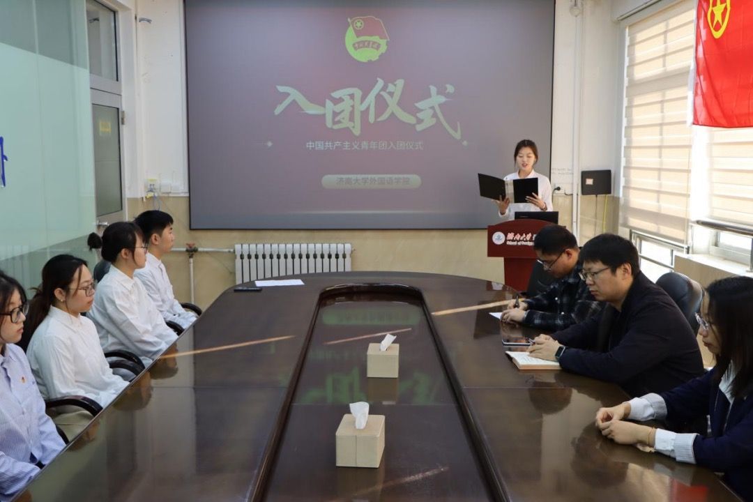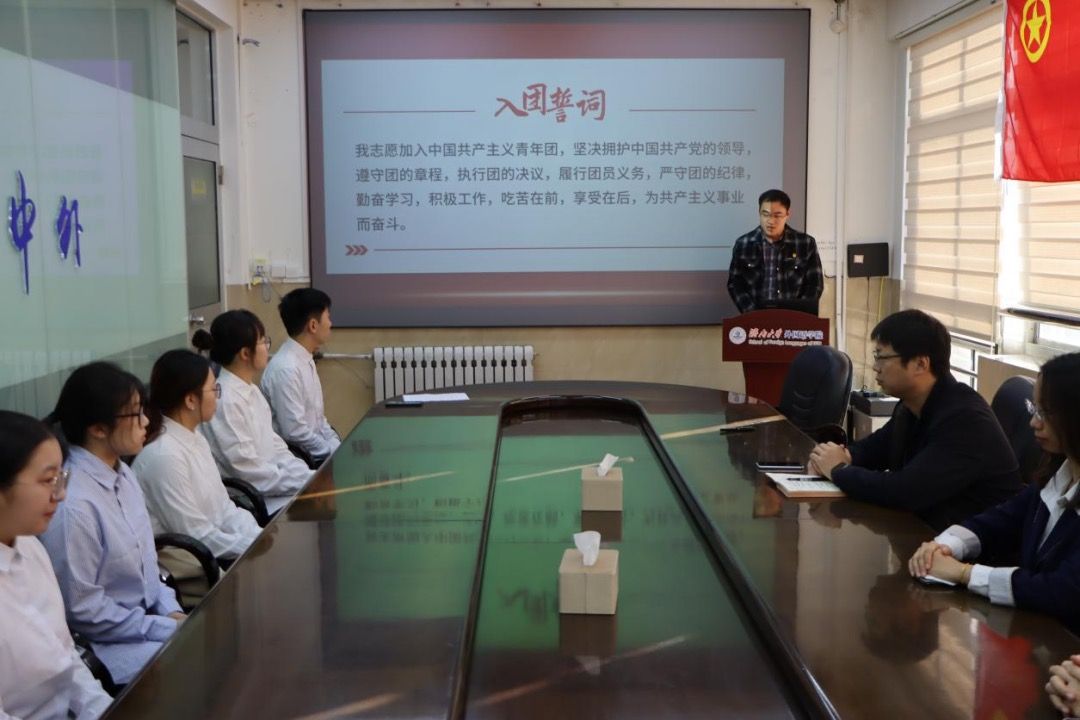 为深入学习宣传贯彻习近平新时代中国特色社会主义思想,追寻党的历史足迹,践行团的初心使命,发出为共产主义事业而奋斗的青春誓言,11月22日,外国语学院在第一教学楼608会议室举行2024年下半年新发展团员入团仪式,外国语学院副处级组织员李春海,学生办公室主任刘毅,团委书记吴杨洋,辅导员王艺笑,优秀团员代表和全体新发展团员参加仪式。会议由郭智昊主持。