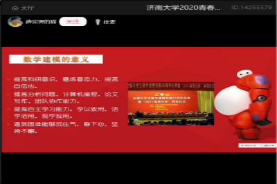 为提升同学们的数学思维能力,使学生的学习与实际应用相结合,促进学生对于数学建模竞赛的了解和激发学生参与竞赛的兴趣,数学科学学院于4月14日晚7点,在网络平台开展青春创新创业论坛讲座。