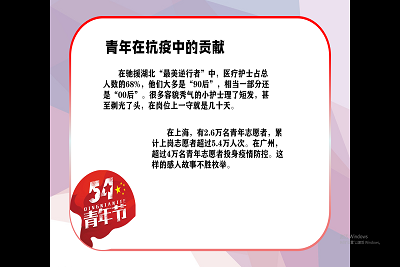 本次比赛以腾讯会议的形式进行。随着主持人的讲解,比赛正式拉开帷幕。展现在眼前的一张张精美的PPT作品,无不体现出选手们的用心准备,无论是动画、视频还是背景还是画面布局都倾注了同学们的心血。现在我国抗疫胜利即将到来,生科学子在此次活动中用PPT的形式,通过插入的疫情相关视频、图片以及音乐来抒发自己对于抗疫的感受,展现出对武汉抗疫胜利、全国抗疫胜利的喜悦之情,抒发出对此次抗疫过程中医护人员的敬畏之情,表达对自己将来的思考以及对未来美好的祝愿。PPT中呈现出一张张医护人员的背影,一张张长时间佩戴口罩压出痕迹的面庞,他们中的有些人年龄与我们相仿,但当穿上防护服时,他们便不是孩子,他们用瘦弱的身躯背负着拯救祖国人民的使命。五四将至,这次活动也一并表达了青年人之于祖国的责任和担当。在活动中同学们声情并茂的演讲,进行着激烈的角逐,最终评委公正客观的评判评选出一等奖一名,二等奖两名,三等奖三名。
