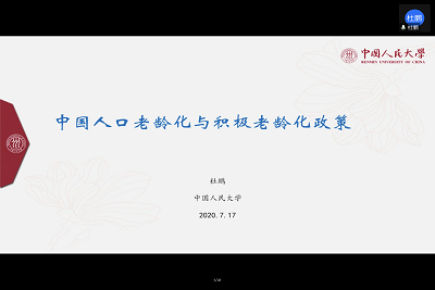 7月17日,政法学院2020暑期系列云讲座(社会学)在腾讯会议平台顺利举行。活动邀请中国人民大学副校长、中国人民大学老年学研究所所长杜鹏教授做题为《中国人口老龄化与积极老龄化政策》的专题讲座。讲座由政法学院院长梁丽霞主持,学院师生及相关学者280余人在线参加。