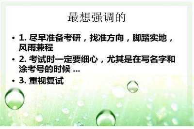 总的来说这次交流会让我们看到不管考研还是就业应该切合实际不盲目跟风,要根据大环境,根据自己的特点进行选择。每个人都有自己的梦想,自己的追求,自己的目标。不同的人经历不同,性格不同自然选择也不同。让我们的优秀成为一种习惯,祝大家以后在属于考研的道路上大放光彩。