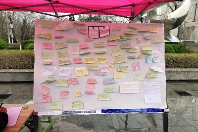 本次活动秉承着传播雷锋精神的目的,呼吁各位同学缅怀雷锋,分享与雷锋有关的故事以及发生在自己或身边的好人好事。同学们将这些故事写在一些便利贴上,工作人员会将这些便利贴汇总并筛选,选择一些质量较高的故事,将附有这些故事的便利贴贴在展示台上进行展示,通过这种方式,让善良的故事温暖全体师生的内心,并进一步传播了雷锋精神。同学们踊跃报名,积极参与了此次活动,用文字记录下乐于助人瞬间的同时,也用欢声笑语点亮了活动现场。更有一部分同学通过绘画的方式来讲述故事,更加直观地诠释了雷锋精神。